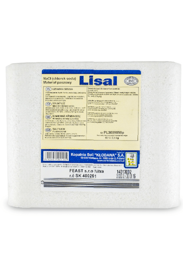 Soľná kocka Lisal je vyrábaná mletím kamennej soli a lisovaním do kociek s váhou 10 kg. Používa sa ako doplnok výživy pri nedostatku minerálov. Kŕmna soľ napomáha tráveniu a dobrému fyzickému vývoju zvierat. Sodík v soli udržiava osmotický tlak v bunkách.